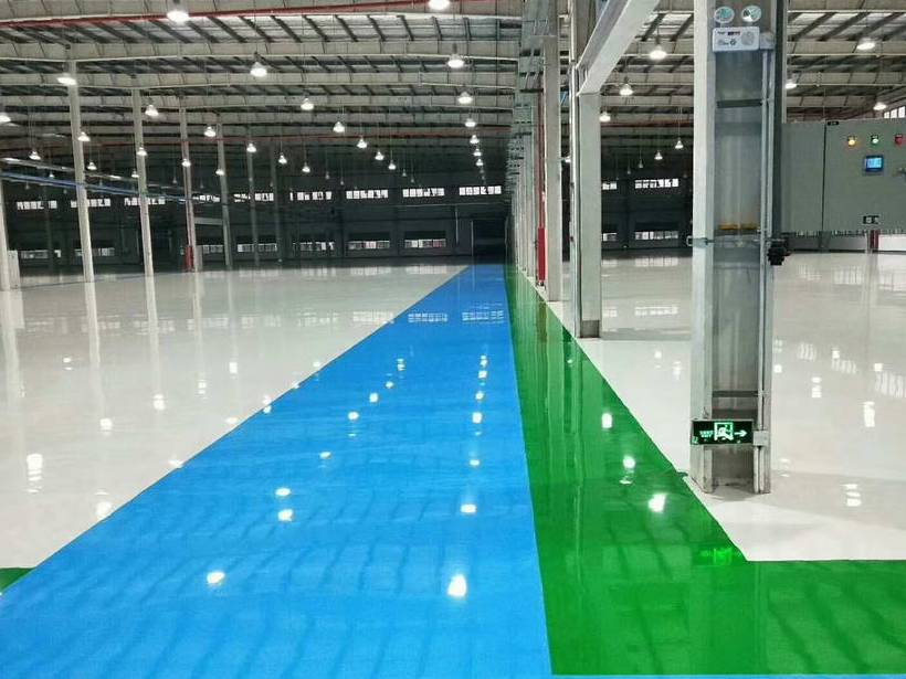 ⑥自流平面漆:用自流平型环氧面漆均匀镘涂一道,完工后整体地面达到光亮洁净,颜色均一,无空鼓;